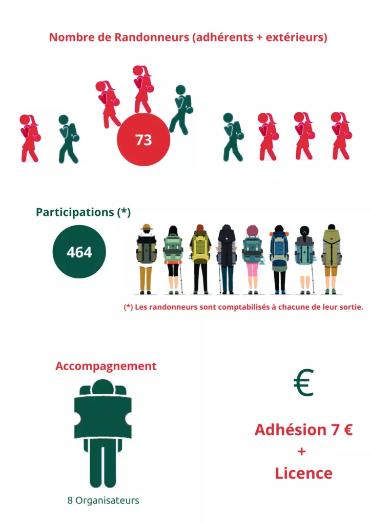 Par souci de convivialité le nombre de participants aux sorties est limité. Généralement autour d’une quinzaine de randonneurs.